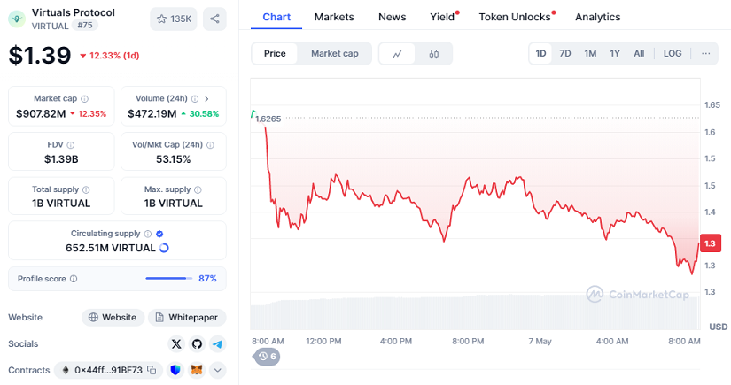 في الساعات الأخيرة، بروتوكول فيرتشوالز (VIRTUAL) قد فاجأ السوق بانخفاض قدره 12.33%، مما ترك سعره الحالي عند 1.39 دولار وتقليص قيمته السوقية إلى 907.82 مليون دولار. هذا التراجع أثار تساؤلات بين المشككين الذين يدعون أن الضجة قد تتلاشى. ومع ذلك، فإن مثل هذه التصحيحات ليست بالضرورة علامة على الضعف، بل هي فرصة طبيعية للتوحيد في سوق ارتفع بأكثر من 190% في الشهر الماضي. الانخفاض، على الرغم من أهميته، لم يشكك في إمكانات البروتوكول، الذي لا يزال واحداً من الأكثر وعداً ضمن مشاريع الألتكوين.
