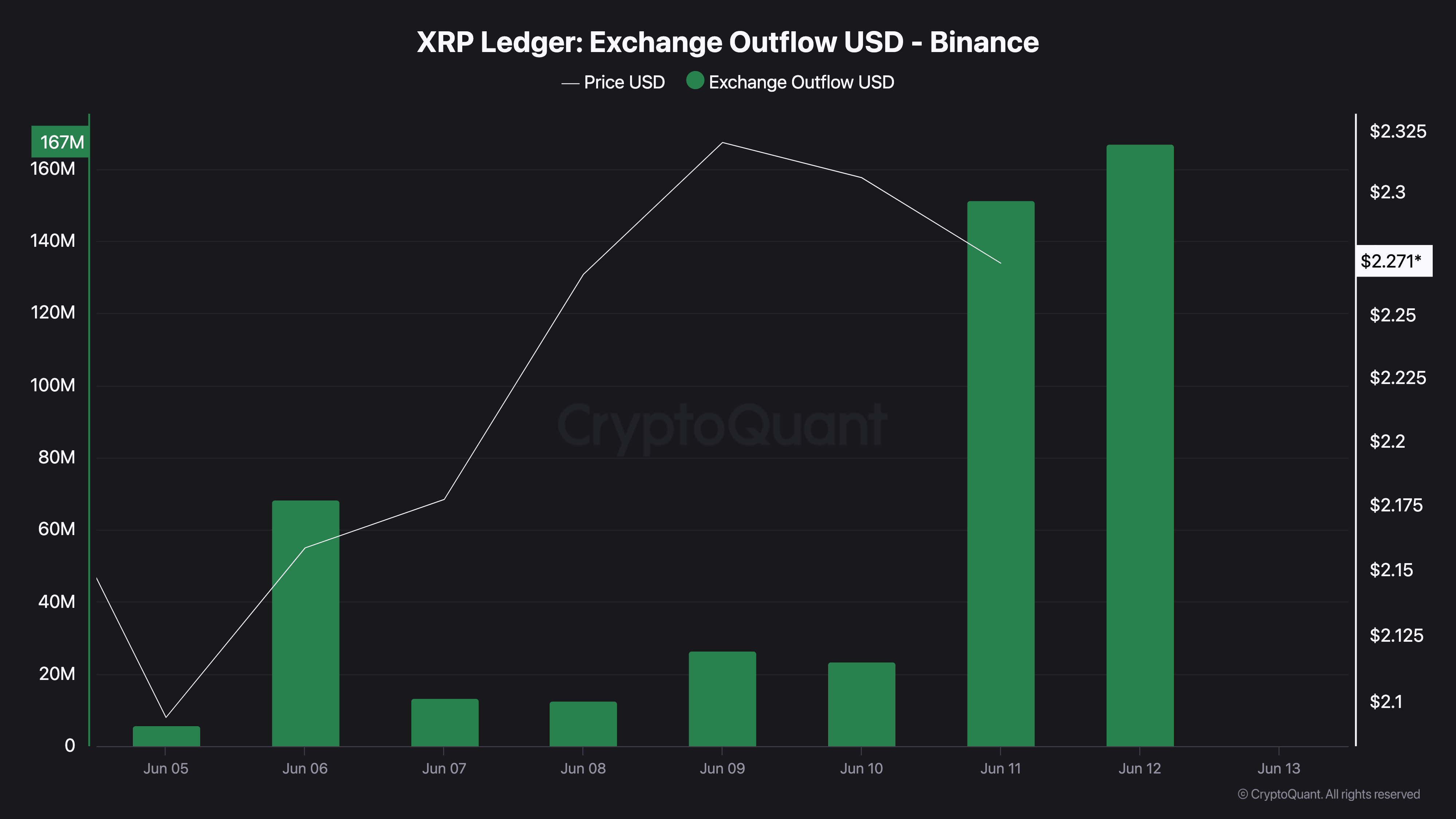 وفقًا للبيانات من CryptoQuant، شهد اليوم، XRP سحب أكثر من 167 مليون دولار من تبادل Binance، مما يمثل واحدة من أكبر عمليات السحب على الإطلاق. تأتي هذه الخطوة بعد سحب أكثر من 151 مليون دولار من قيمة الرموز من المنصة في 11 يونيو، مما يدل على تغيير استراتيجي مقصود من قبل حاملي XRP. لقد جذب الارتفاع المفاجئ في كمية XRP المسحوبة في وقت قصير جذب الاهتمام من مجتمع العملات المشفرة، خاصةً للمستثمرين الذين يبحثون عن علامات حول إجراءات السعر في المستقبل.