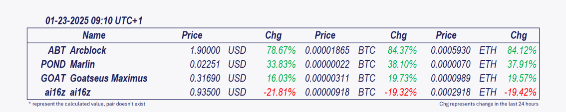 - Arcblock and Marlin**:** هذه العملات المشفرة قد نمت بشكل ملحوظ خلال الـ 24 ساعة الماضية.