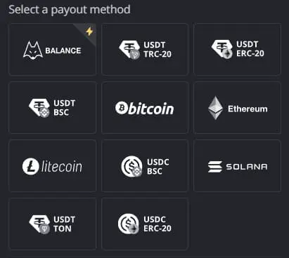 على الرغم من أن البيتكوين والإيثيريوم يظلان الخيارين الأكثر شيوعًا، تدعم بعض المنصات عملات رقمية إضافية. تشمل خيارات الدفع النموذجية: