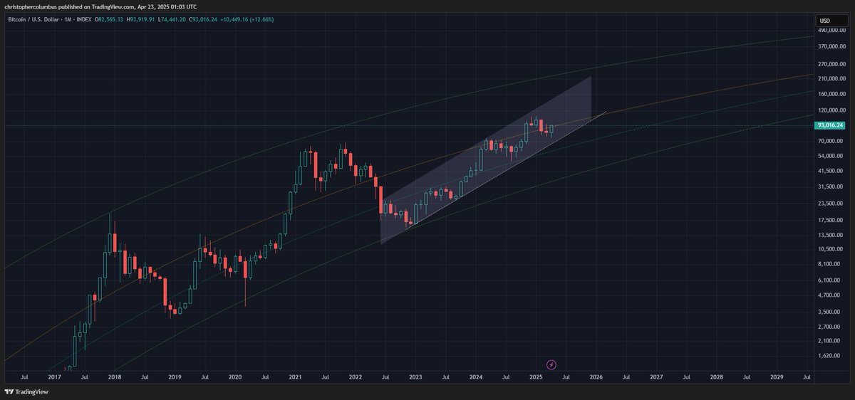 Gráfico de precios de BTC | Fuente: Dave the Wave/XAdemás, Dave también compartió un gráfico que muestra que Bitcoin sigue estando dentro del canal alcista según el modelo LGC.