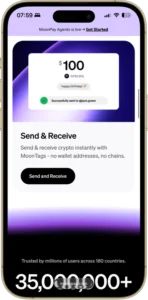 La billetera es no custodial, y MoonPay afirma que no tiene acceso a tus cripto ni a tu frase de recuperación. Tampoco publica el mismo nivel de detalles técnicos que algunas billeteras de código abierto, por lo que no es el producto adecuado para quienes buscan documentación pública profunda sobre gestión de claves. Las transacciones se inician, revisan y confirman en la app, con protecciones adicionales a nivel de cuenta como bloqueo de app y verificación escalonada para acciones sensibles. Desde la billetera, puedes comprar, vender, enviar, recibir y convertir activos soportados, usar MoonTags para transferencias más fáciles, seguir la actividad y exportar la frase de recuperación si deseas restaurar la billetera en otro lugar más tarde.