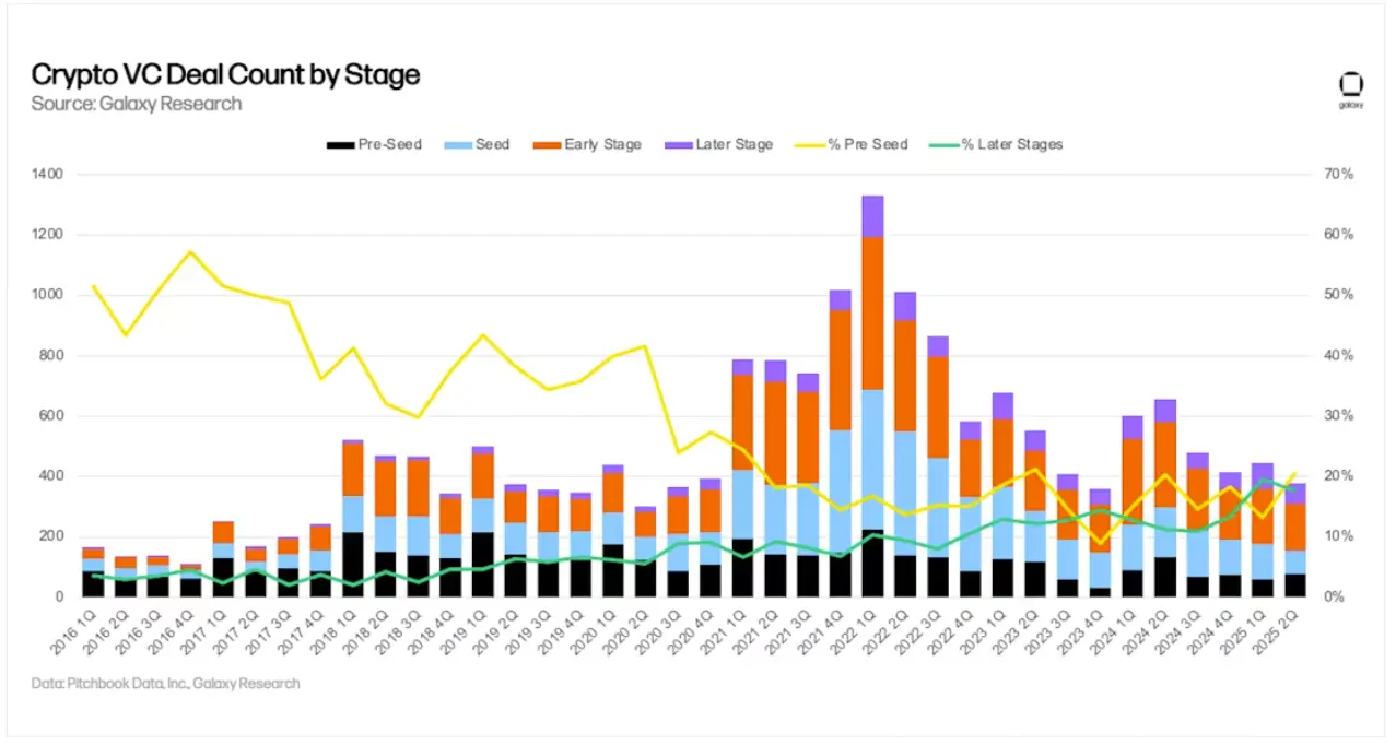 *Crypto l’activité de deals en capital-risque a continué de s’affaiblir en 2025, selon les dernières données disponibles, avec une tendance à la baisse tant pour les volumes de financement que pour le nombre de deals. Source : Galaxy Research## Telcoin clôture une levée de fonds de $25 millions pour créer une banque d’actifs numériques