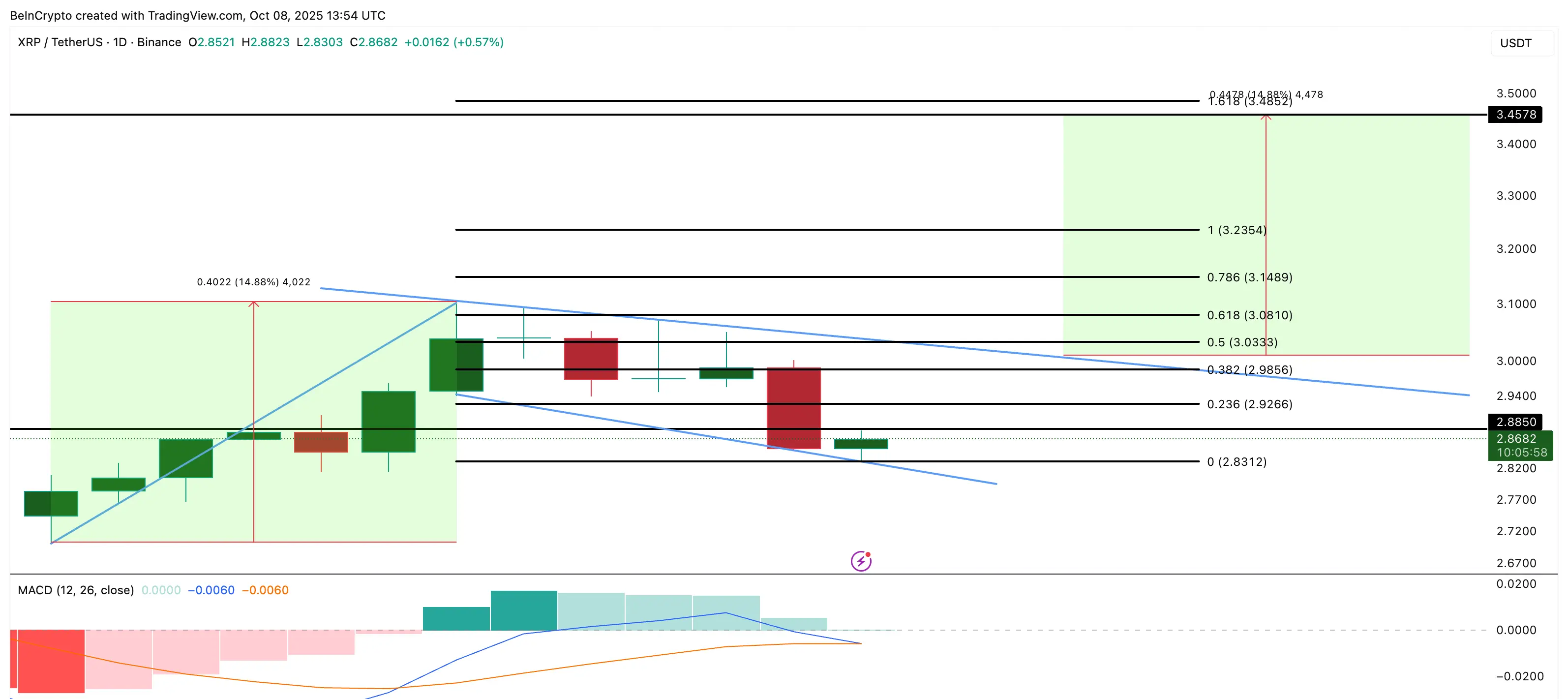 Si cette dynamique baissière se poursuit, le prix de XRP pourrait reculer vers le niveau de support du drapeau autour de 2,83 $.