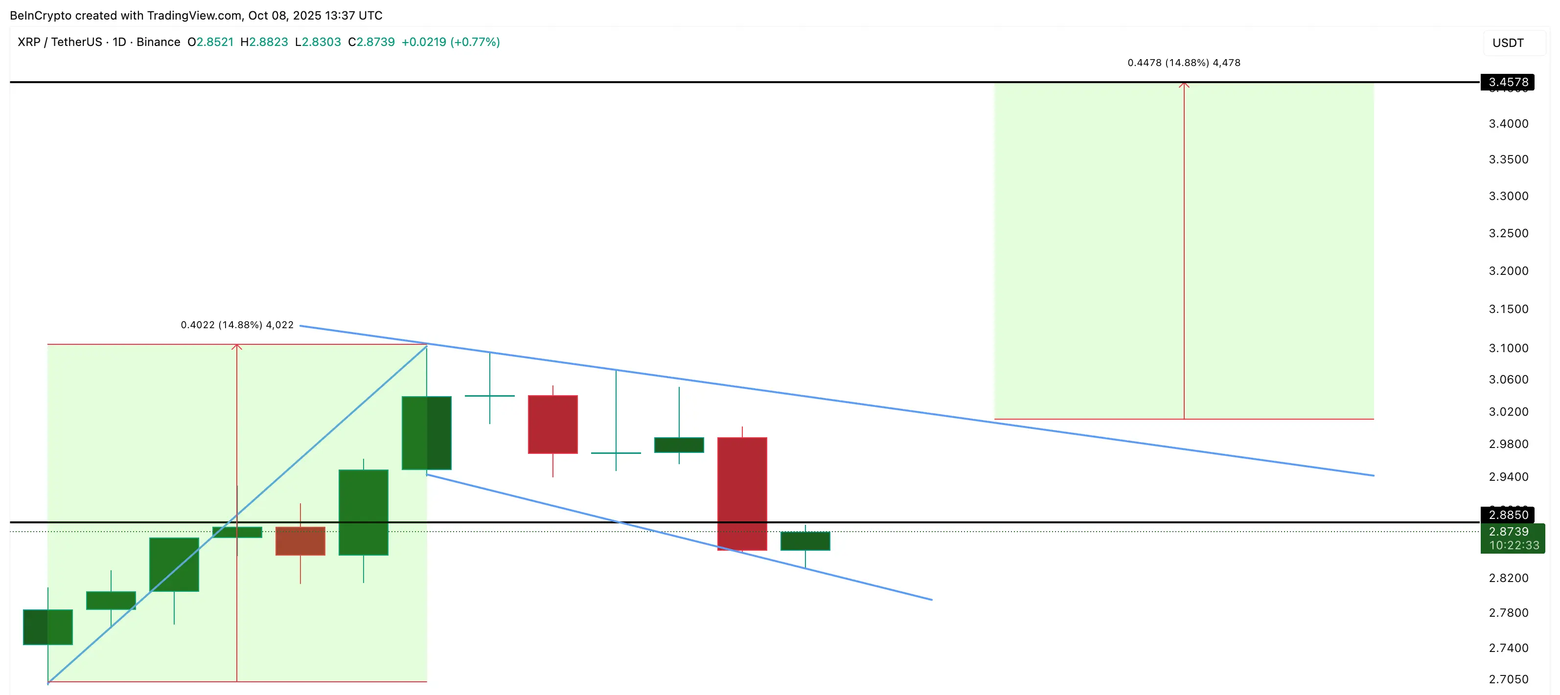Si le modèle de drapeau haussier de XRP se déroule comme prévu et que le jeton franchit avec succès la ligne supérieure du drapeau, son prix pourrait atteindre environ 3,45 $ à moyen terme.