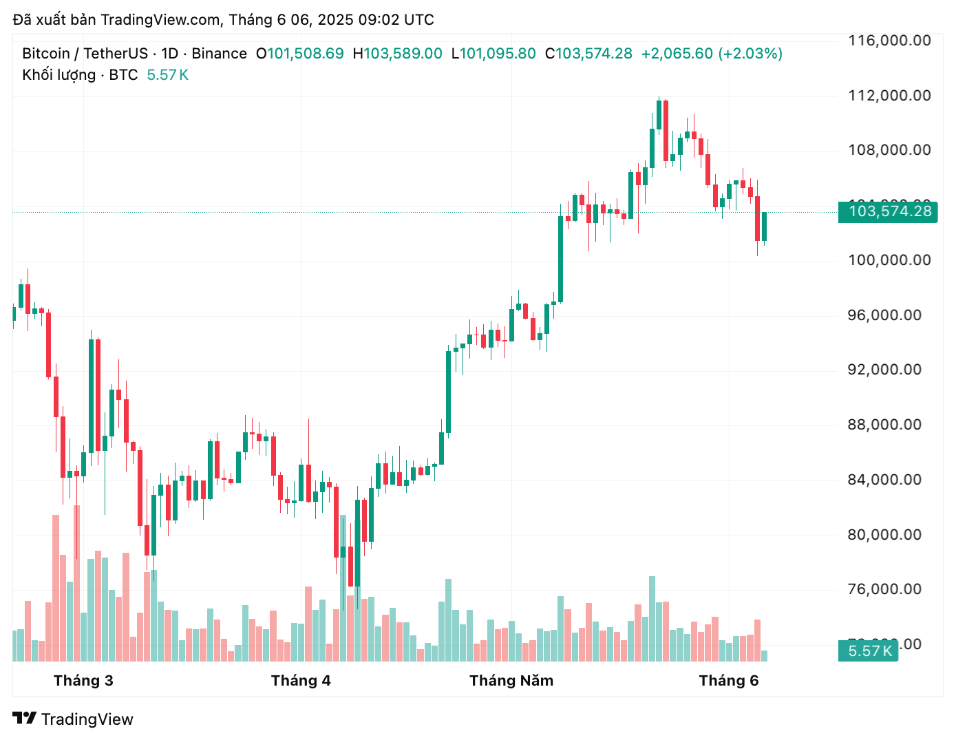 Bitcoin pernah mencapai level tertinggi baru yaitu 111.970 USD pada tanggal 22/5, sebelum mengalami penyesuaian ringan menjadi 103.574 USD pada saat penulisan artikel ini, menurut data dari Majalah Bitcoin. Meskipun demikian, Pruscino percaya bahwa level 112.000 USD tetap menjadi tujuan bullish yang banyak trader tuju – sebuah titik yang memiliki makna psikologis dan teknis yang penting.