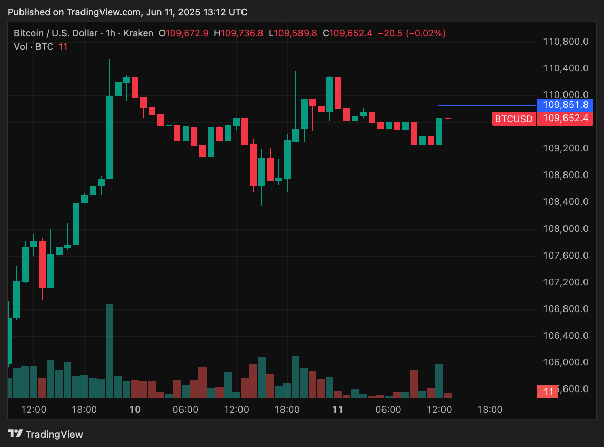 Inflasi yang meningkat pada bulan Mei adalah sinyal pertama dalam 3-4 bulan terakhir. Segera, Bitcoin mencatatkan peningkatan kecil, mendekati 110.000 USD pada saat penulisan.