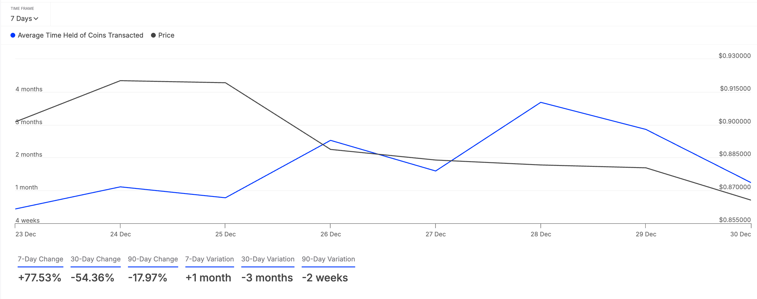 Sementara ADA berfluktuasi secara horizontal selama seminggu terakhir, waktu kepemilikan investor meningkat secara signifikan. Secara spesifik, waktu kepemilikan rata-rata telah meningkat 77% selama periode survei.