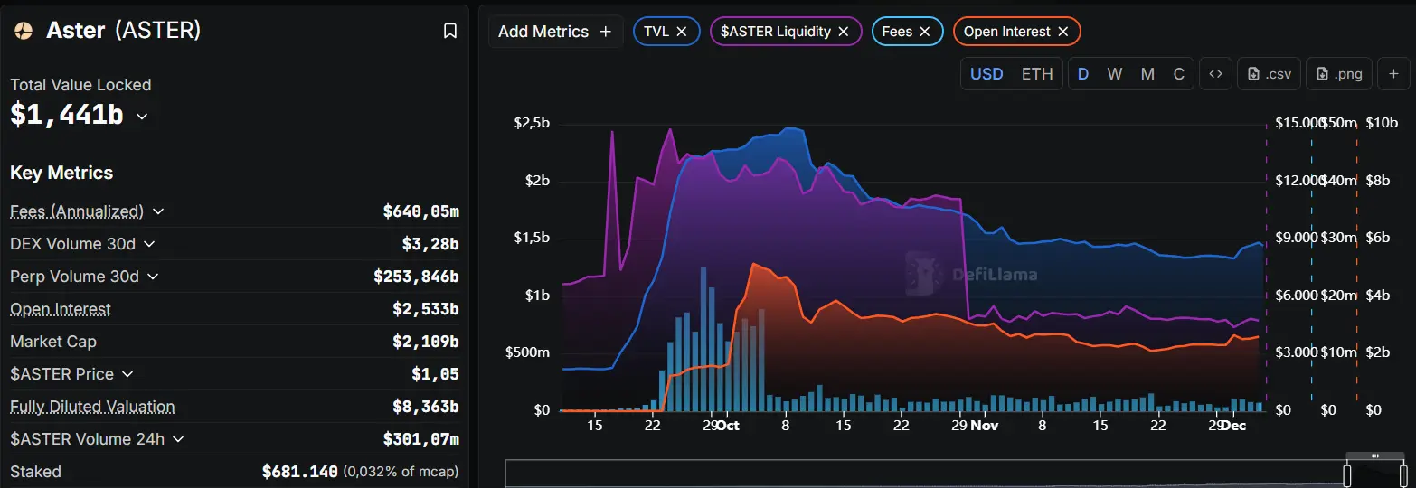 Untuk statistik on-chain, Total Value Locked (TVL) turun dari puncak $2 miliar menjadi $1,35 miliar, namun stabilisasi terbaru dinilai positif. Likuiditas dan pendapatan biaya melemah, tetapi penurunannya tidak berlanjut.