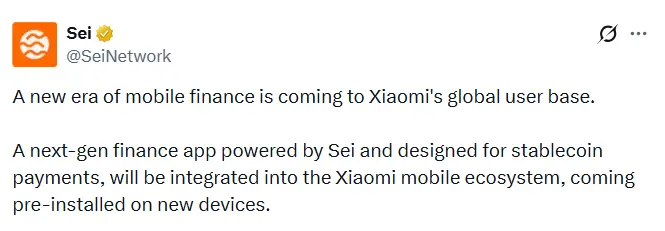 Aplikasi keuangan generasi baru, didukung oleh Sei dan dirancang untuk pembayaran stablecoin, akan diintegrasikan dengan ekosistem mobile Xiaomi dan pra-instal di perangkat baru. Pengumuman ini keluar beberapa jam yang lalu.