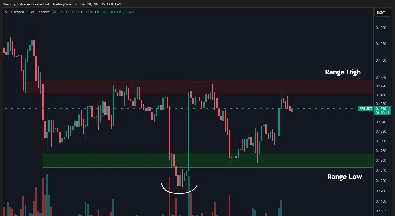 "SEI telah diperdagangkan dalam rentang sempit selama tiga minggu terakhir. Kami mengamati deviasi ke level rendah yang lebih tinggi di bawahnya. Jika titik tertinggi dari rentang dan resistance ditembus, pergerakan yang lebih kuat mungkin akan mengikuti, terutama setelah rentang harga yang diperpanjang dan konsolidasi ini.