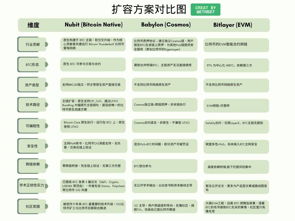 既存のスケーリングスキームを比較することにより、ネイティブのワイドチャンスパスは、ビットコインスケーリングのボトルネックを解決するだけでなく、ビットコインのセキュリティとトラストレスな特性を維持する独自の利点を示しています。 この巨大なイノベーションは、すべての投資家によるさらなる分析とフォローアップに値する爆発的な物語を生み出しています。 ビットコインサンダーボルトの実装者として、Nubitはビットコインのメジャーアップグレードにつながったネイティブスケーリングを代表し、HSBCが最新のレポートで認めた最初のビットコインプロジェクトになりました。