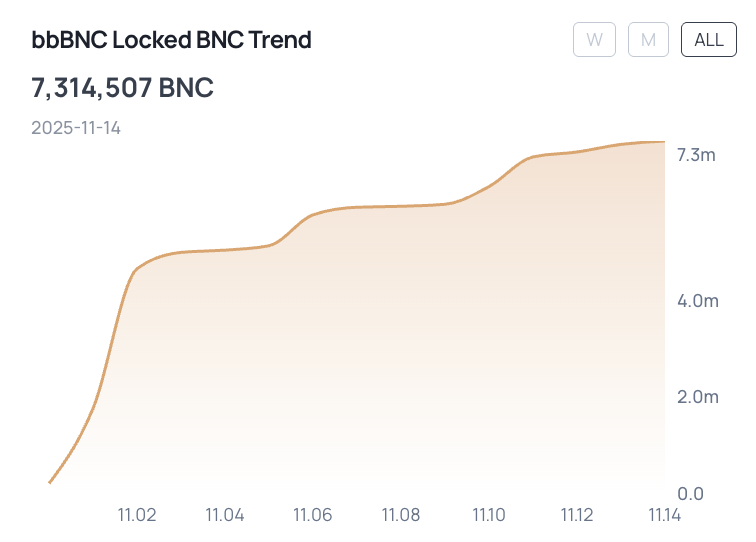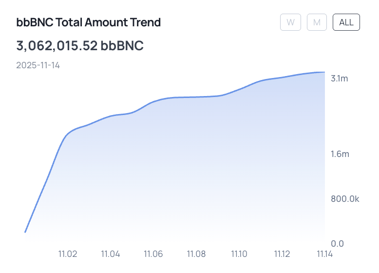 これらのロックされたBNCトークンは、Bifrostのリキッドステーキングデリバティブである3,062,015.52 $bbBNCに変換されています。この変換により、ユーザーは流動性を維持しつつ追加の利回り獲得活動に参加できるため、資産を遊ばせずに済みます。