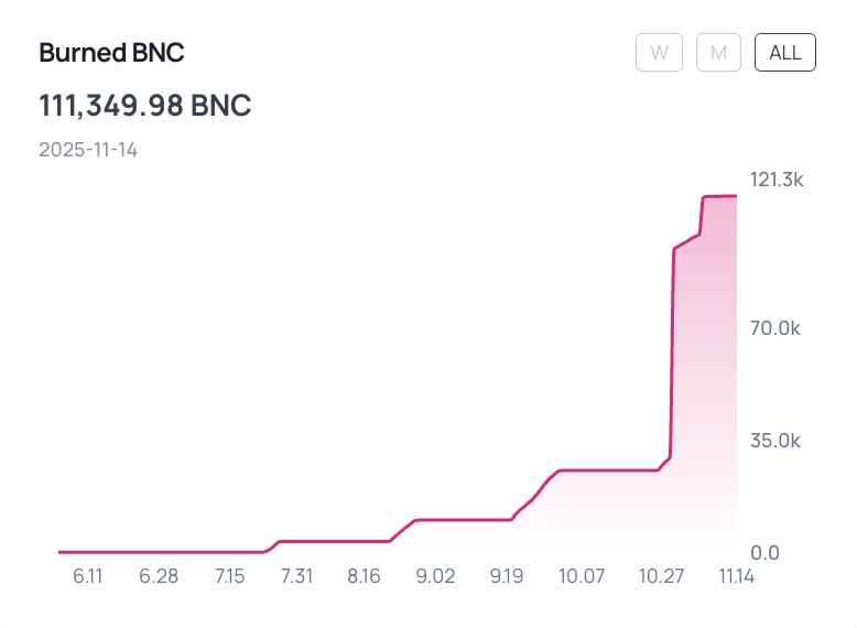 デフレ効果: 買戻しに加え、プロトコルは合計111,349.98 $BNC バーンを達成しました。この買戻しとバーンの二重アプローチは、実質的な利回り創出とBNCトークン供給へのデフレ圧力の両方に貢献します。