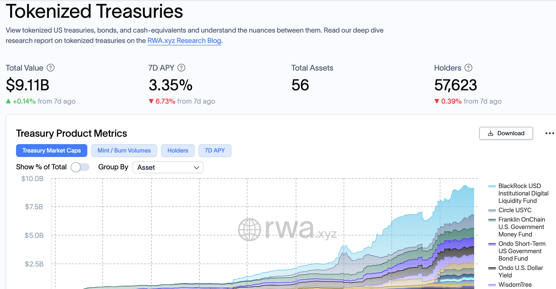 2025年には、米国財務省証券に投資するトークン化されたマネーマーケットファンドが急速に拡大しています。RWA.xyzのデータによると、ブラックロックのオンチェーンマネーマーケット商品は現在、トークン化された資産として23億ドルを保有しており、フランクリン・テンプルトンのマネーマーケットファンドは資産として$826 百万以上を持っています。