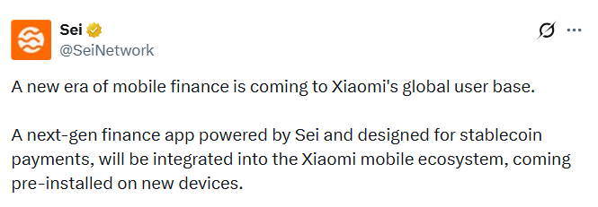 SEIによってサポートされ、ステーブルコインの支払いを目的とした新世代の金融アプリケーションが、Xiaomiのモバイルエコシステムと連携し、新しいデバイスにプリインストールされる予定です。この発表は数時間前に行われました。