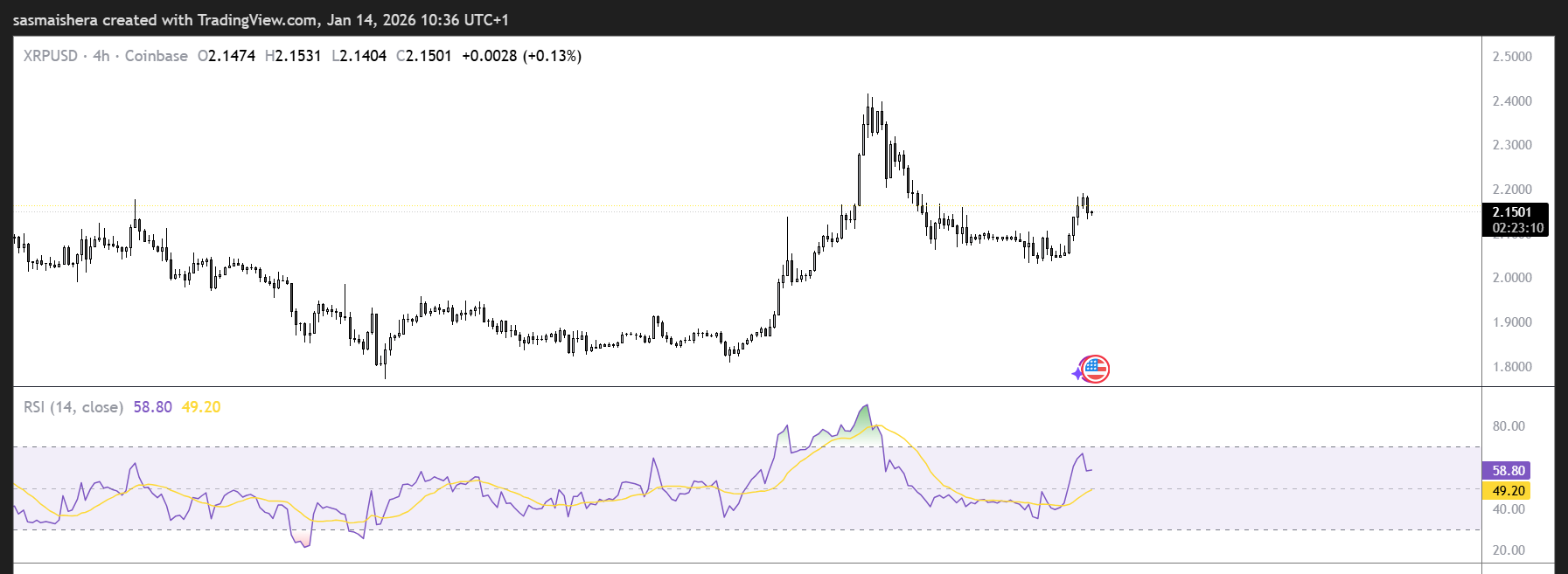 執筆時点(火曜日)で、XRPは約$2.15で取引されています。