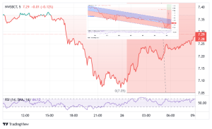 2. NWSBCT指数(ブルーチップ用):リアルタイム取引可能なベンチマークNWSBCT(ブルーチップのサブセットを用いた広範な市場の投資可能なレプリケーション)、通称「ブルーチップ」。日足チャートは、遅いセッションで構造的な買いが入り、揺さぶりを見せる:急落後、低域(約7.05)に入り、その後市場は上昇し、基盤を築いた。📍 9:00 CET時点では7.29付近で取引中。
