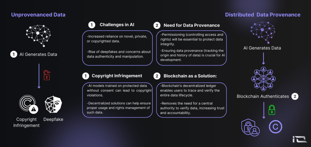 As Balaji Srinivasan said, “Artificial intelligence is an abundant digital product, Cryptocurrency is a scarce digital asset; AI generates, Cryptocurrency verifies.” As AI models increasingly rely on novel, private, and even copyrighted data, and with the growing threat of Depth falsification, ensuring data source and proper permission becomes even more important.