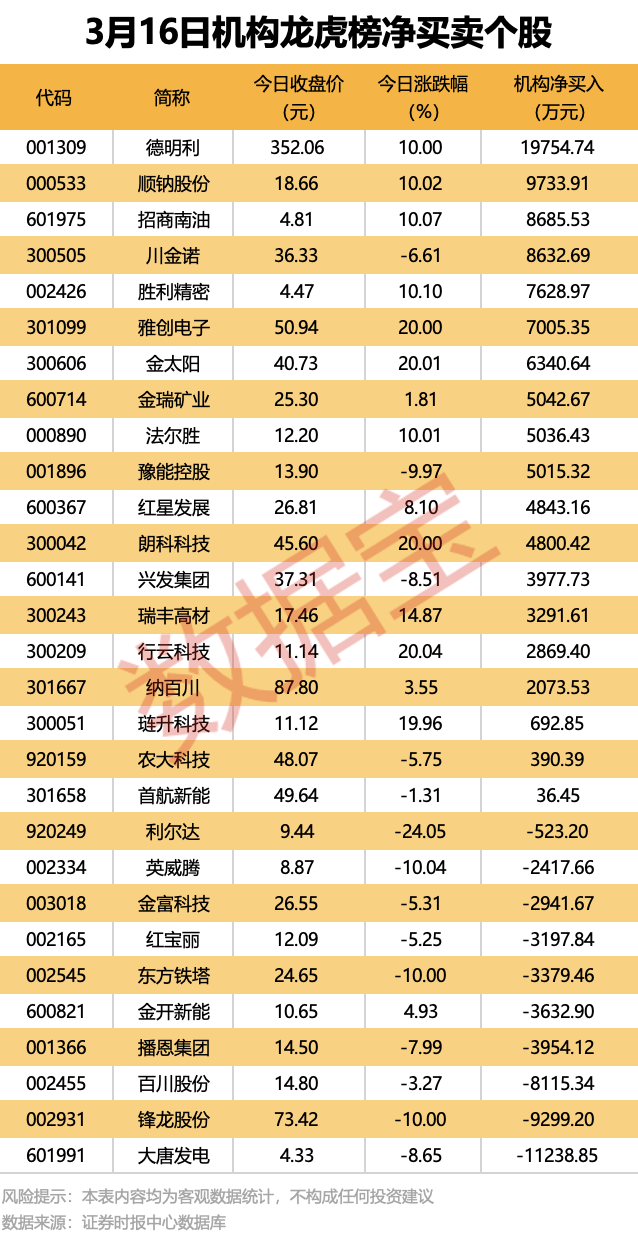 Top Stocks Revealed: 16 stocks had net institutional buy-ins exceeding 10 million yuan