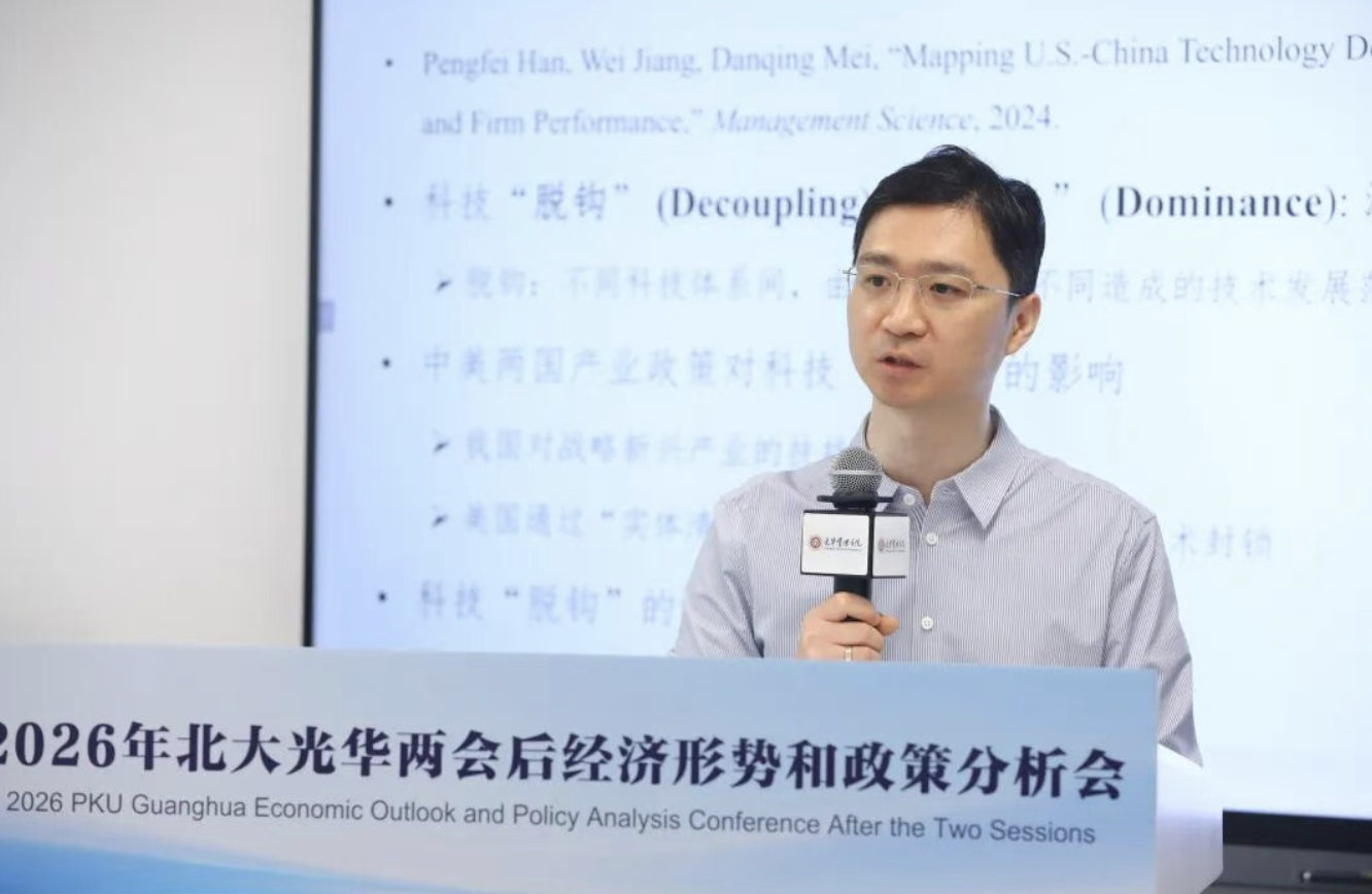 The 2026 National People’s Congress and the Chinese People’s Political Consultative Conference concluded smoothly, drawing much attention to China’s economic trajectory in the first year of the “14th Five-Year Plan.” On March 17, the 2026 Peking University Guanghua School of Management and Peking University Institute of Economic Policy jointly hosted the Post-Conference Economic Situation and Policy Analysis Meeting at Peking University Science Park in Beijing. Focusing on macroeconomic conditions, foreign trade, capital market reforms, technological innovation, real estate development, personal bankruptcy systems, labor productivity, AI impacts, and other topics, nine scholars from Guanghua School of Management provided in-depth analysis.