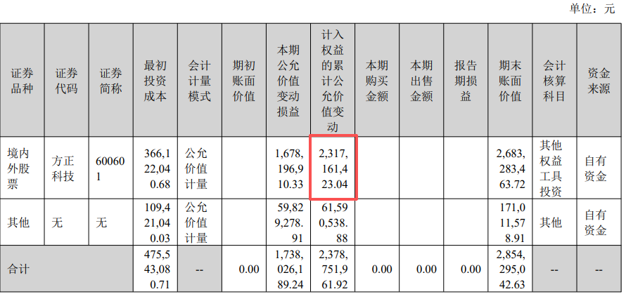 Beyond core business, Shenghong Technology is also a “stock trading expert.” Last year, the company bought into Founder Technology (600601.SH), with an investment cost of 366 million yuan, and the book value at the end of the period rose to 2.683 billion yuan, with an unrealized gain of about 2.3 billion yuan, yielding over 600%.