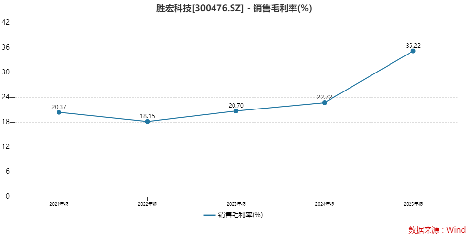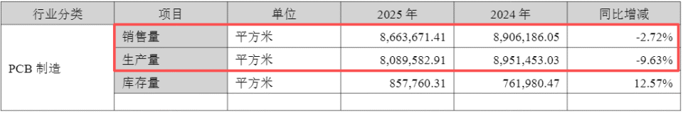 In 2025, Shenghong Technology’s PCB production volume was 8.0896 million square meters, down 9.63% year-on-year; sales volume was 8.6637 million square meters, down 2.72%. Clearly, the growth in performance is not driven by “volume expansion,” but mainly by “price-driven” increases.