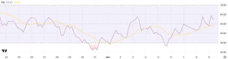 Solana (SOL) tem um valor de mercado de mais de US$ 80 bilhões, mas caiu mais de 10% nos últimos 30 dias. Apesar da recente recuperação, o preço permaneceu abaixo de US$ 170 desde 29 de maio. O RSI recuperou para 54,51, mas não conseguiu romper o nível de 60, indicando que a força de alta ainda é limitada.