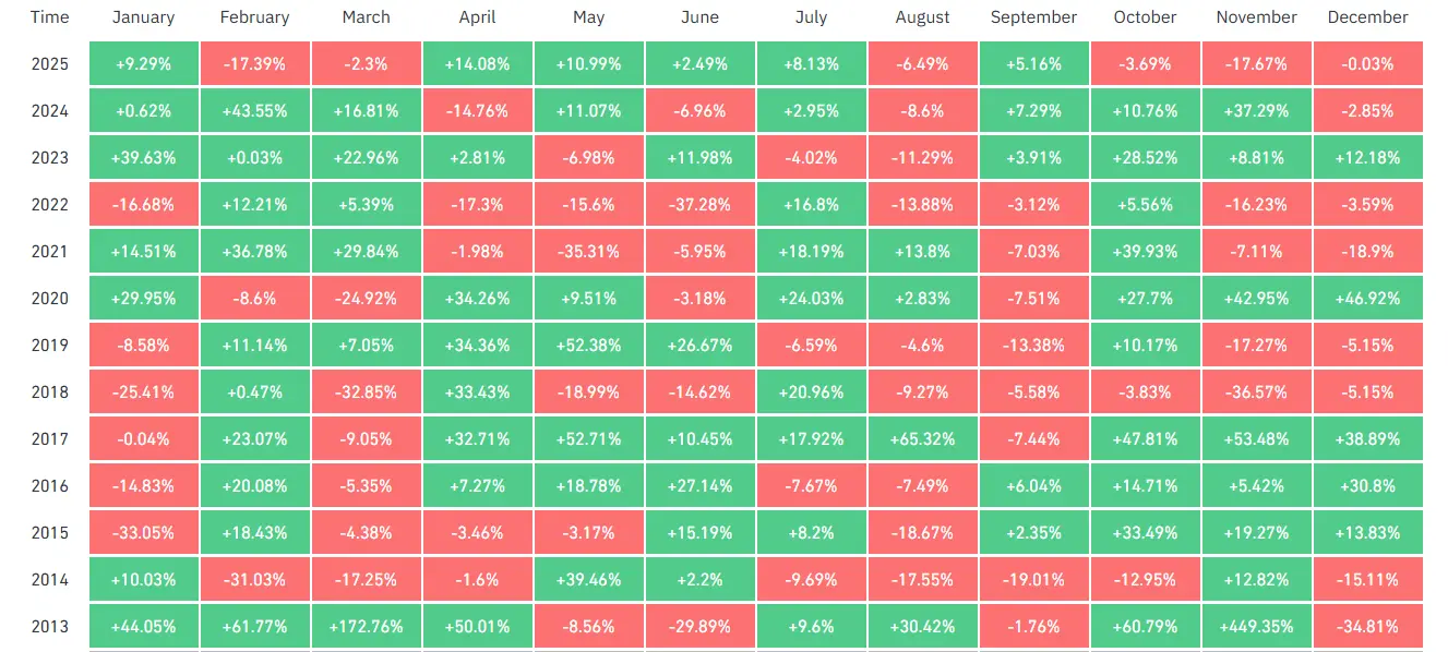 Dezembro tem sido historicamente um mês positivo para o Bitcoin, com um retorno médio de 4,55%.