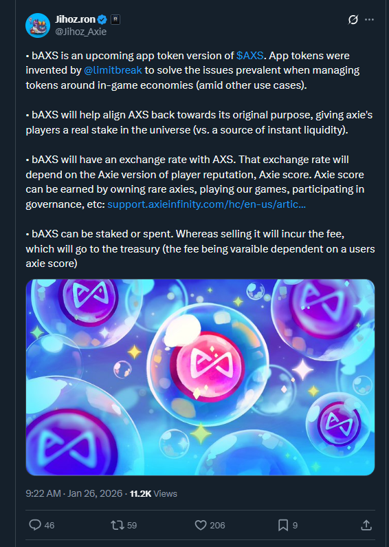The existing AXS tokens will not be directly changed to bAXS. Jihoz_Axie made this very important point at X. Instead, new tokens are used to replace the current emission streams in the gameplay.