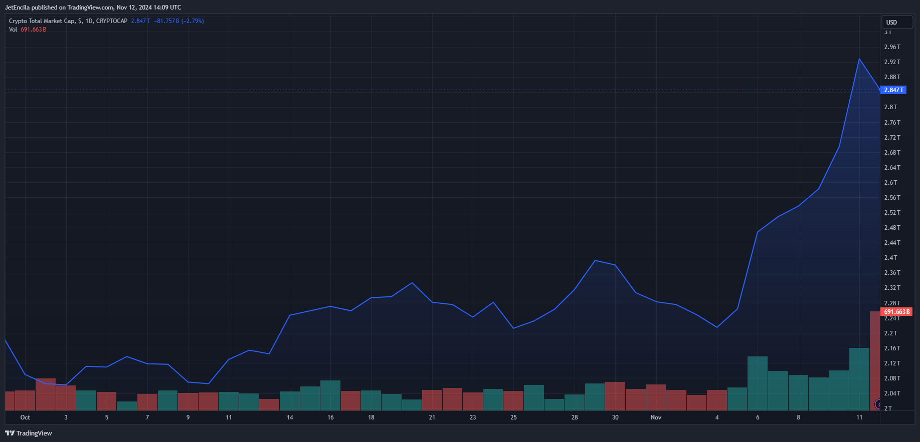 Total crypto market cap currently at $2.8 trillion. Chart: TradingView## Cryptocurrency Extortion Now A Serious Concern