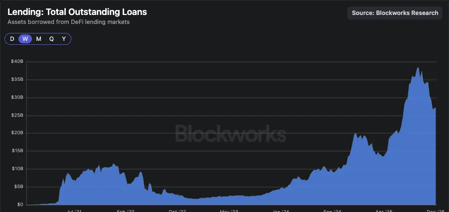 Source: Blockworks Original Title: Rangebound markets, resilient onchain lending Original Link: https://blockworks.co/news/rangebound-markets-resilient While crypto prices have shown a modest recovery in the short term, negative breadth and relative underperformance to TradFi benchmarks on the monthly suggests a prevailing bearish environment.