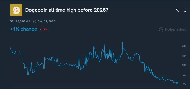 Prediction Markets Assign Less Than 1% Odds to Dogecoin Hitting New ATH Before End of 2025