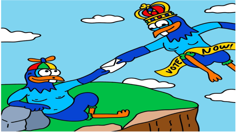 Investors vote for their favorite characters and earn airdropped rewards if their character wins. Further, investors can also win other rewards, participate in online debates, and engage in a faux election.