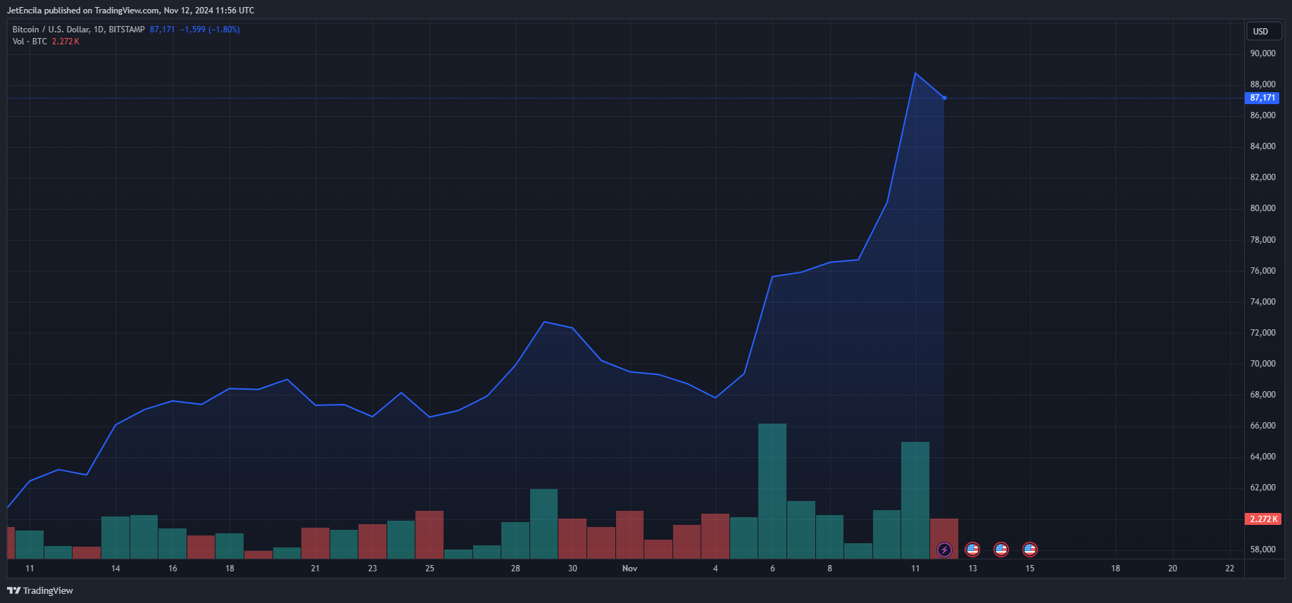 Bitcoin Closing In Fast On $90,000 As Post-Election Rally Continues