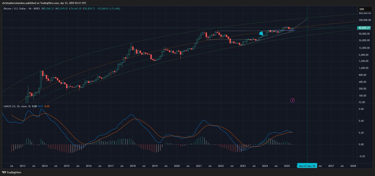 ! Графік бичачого каналу BTC | Джерело: Dave the Wave/XWow аналітик підкреслив, що індикатор Moving Average розходиться логарифмічною дивергенцією (LMACD) над тижневим фреймом залишається вище лінії 0, яка історично вважалася важливою зоною підтримки для BTC.