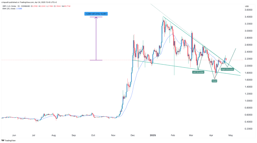 Ціна прорвалася вище верхньої межі клина і успішно протестувала його. Крім того, сформувався обернений патерн “голова і плечі” - ще один бичачий індикатор. Виходячи з цих технічних характеристик, XRP, схоже, готовий до потенційного прориву до свого річного максимуму в 3,40 долара, що приблизно на 57% вище поточного рівня.