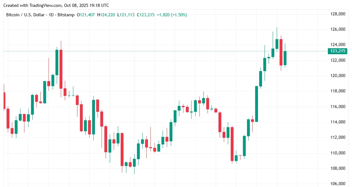 Tổng thống Mỹ Donald Trump có lẽ đang ở đâu đó mỉm cười sau khi đọc biên bản chính thức từ cuộc họp tháng Chín của Cục Dự trữ Liên bang, được công bố vào thứ Tư. Biên bản tiết lộ tâm lý hòa nhã trong số các quan chức Fed, với "khoảng một nửa" thành viên Ủy ban Thị trường Mở Liên bang (FOMC) dự đoán hai vòng cắt giảm lãi suất nữa vào cuối năm 2025. Bitcoin đã tăng vọt sau tin tức, vượt qua $124K một lần nữa sau một đợt giảm nhẹ từ mức kỷ lục gần đây của $126,198.07.