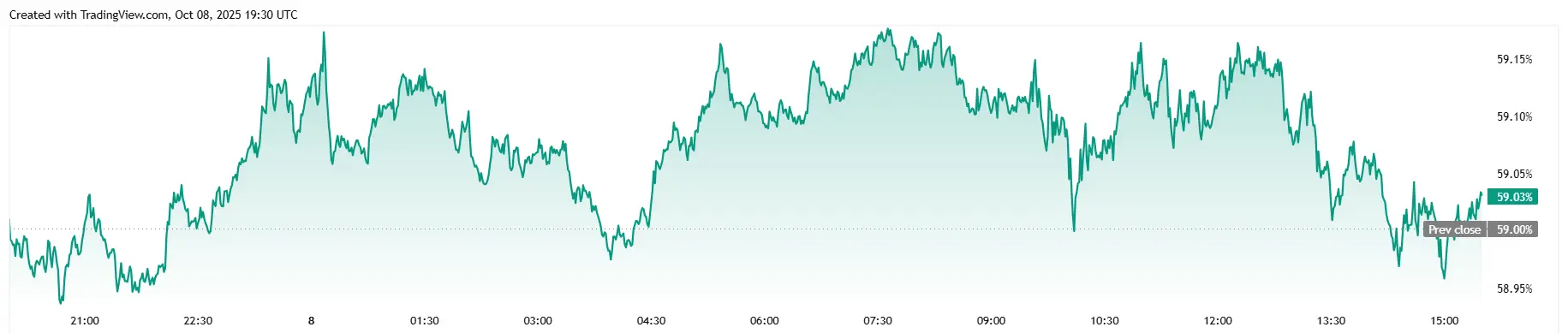 Khối lượng giao dịch trong 24 giờ giảm 12,06% xuống còn 68,48 tỷ USD, nhưng vốn hóa thị trường tăng 1,86% lên 2,46 triệu tỷ USD. Sự thống trị của Bitcoin tăng 0,02%, vượt qua ngưỡng 59% để đạt 59,04% tại thời điểm viết bài.