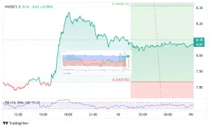 Chỉ số NWSBCT dành cho Blue Chips: Thước đo có thể giao dịch theo thời gian thực, mô phỏng thị trường rộng sử dụng bộ phận blue-chip (bản sao có thể đầu tư của thị trường rộng), thường gọi là “Blue Chips”. Biểu đồ hàng ngày cho thấy giảm ban đầu xuống dưới 7.80 trong phiên Châu Á sớm, sau đó phá vỡ mở rộng lên 8.24 rồi giảm trở lại về 8.10 – phản ánh sự củng cố biến động tiêu chuẩn mà không phá vỡ phạm vi. 📍Tính đến 9:00 CET, đang giao dịch quanh mức 8.10.