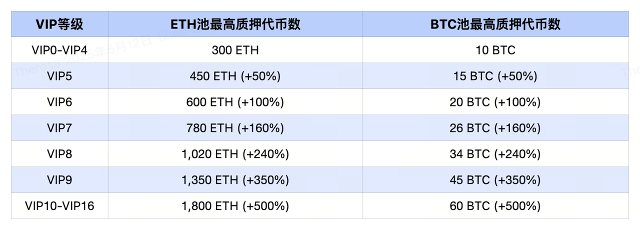 VIP5 及以上用戶參與Launchpool享有專屬質押額度提升權益,最高可享500%質押額度加成。
