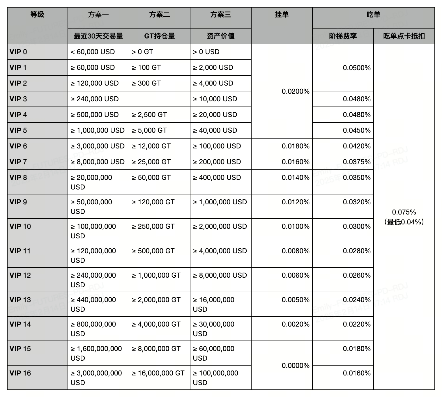 - 詳細費率和 VIP 等級可在費率標準頁面查詢。