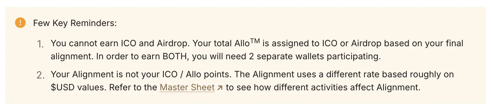 USD.AI 方面已明確表示,單一地址無法同時獲得 IC0 和空投份額,用戶的總分配額度將根據最終的積分貢獻值,被劃定到 IC0 或空投其中一項。如果想兩者兼得,必須使用兩個獨立的錢包來參與積分活動。