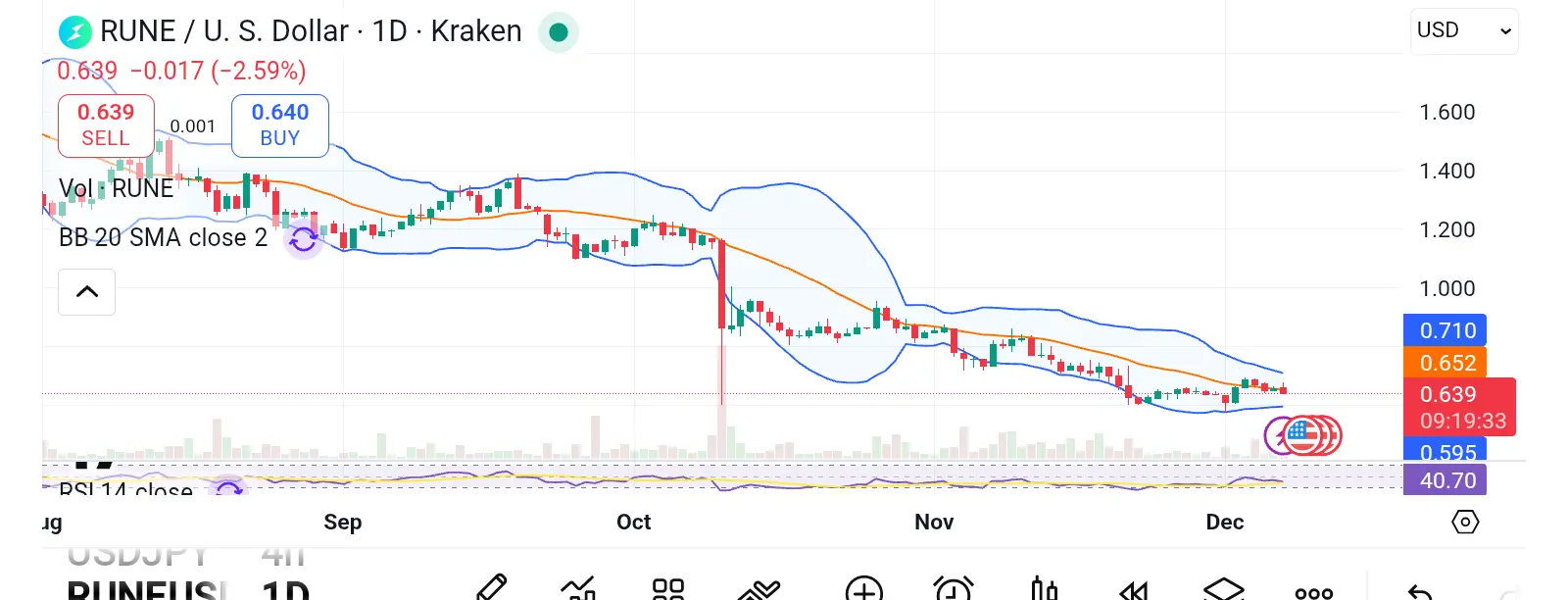 隨著 THORChain 準備推出 V3.14.0 版本,RUNE 有望在週末迎來行情推升。這次更新將帶來效能提升與穩定性升級,增強用戶信心。這類升級常引發活躍交易員的短線劇烈反應。K 線圖上關鍵訊號出現:拋物線 SAR 指標已位於 K 線下方。