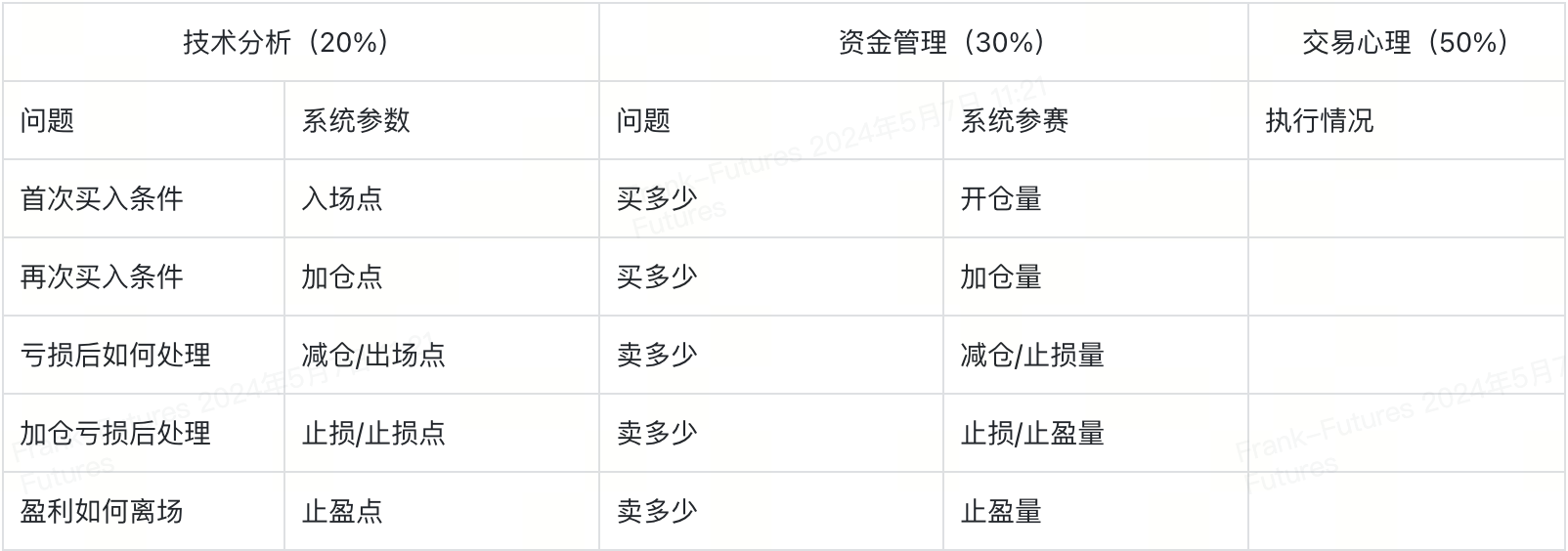 交易系统包括三个组成部分,分别是技术分析、资金管理和交易心理。这些是决定系统交易成功的三大关键因素。