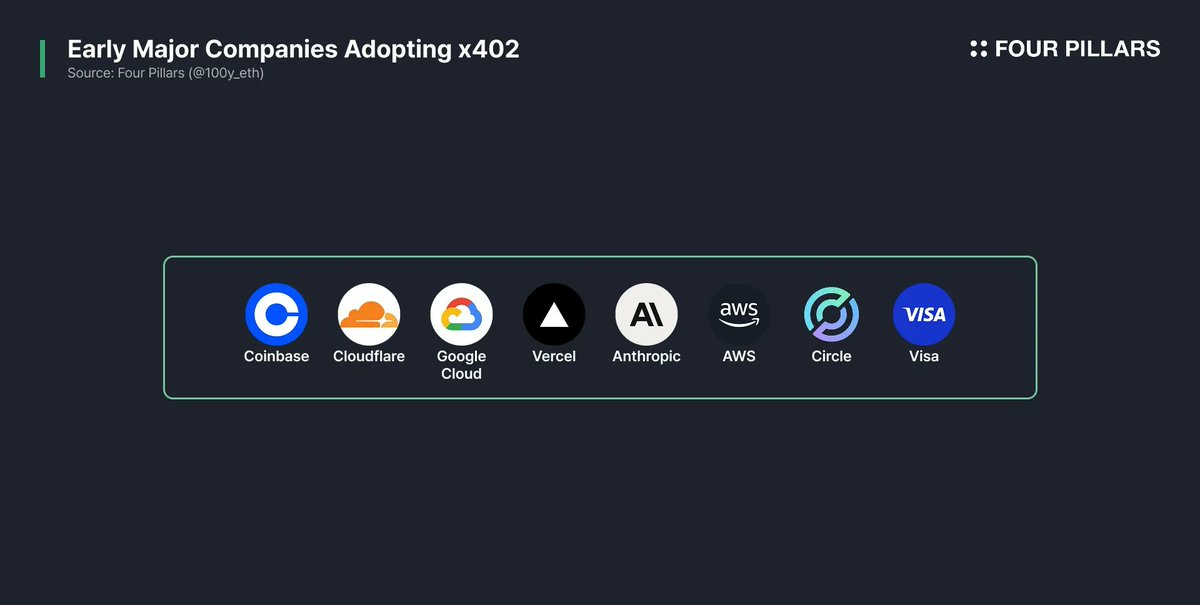 值得关注的是,与典型加密话题不同,x402 吸引了大型 Web2 科技公司的积极采纳。