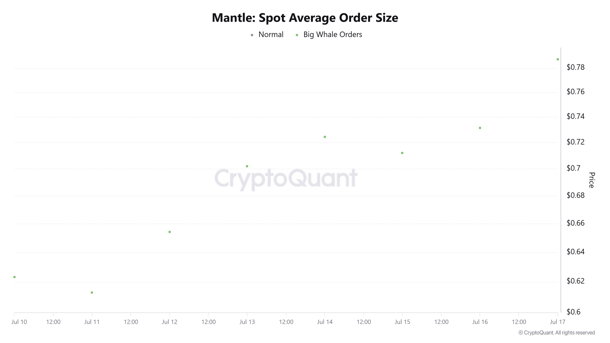 !mnt 现货订单平均大小 |资料来源:CryptoQuant根据交易所的流量数据,MNT 的购买活动稳定。