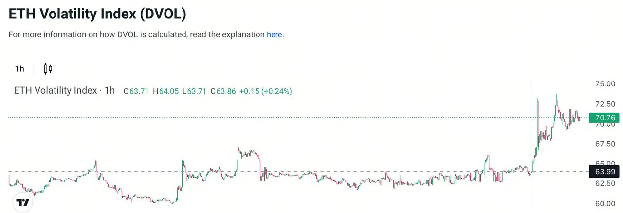 ETH 期权 IV指数 在近期低点附近60% 快速上升至70%;本周ETH 期权不同到期日的隐波情况如下: