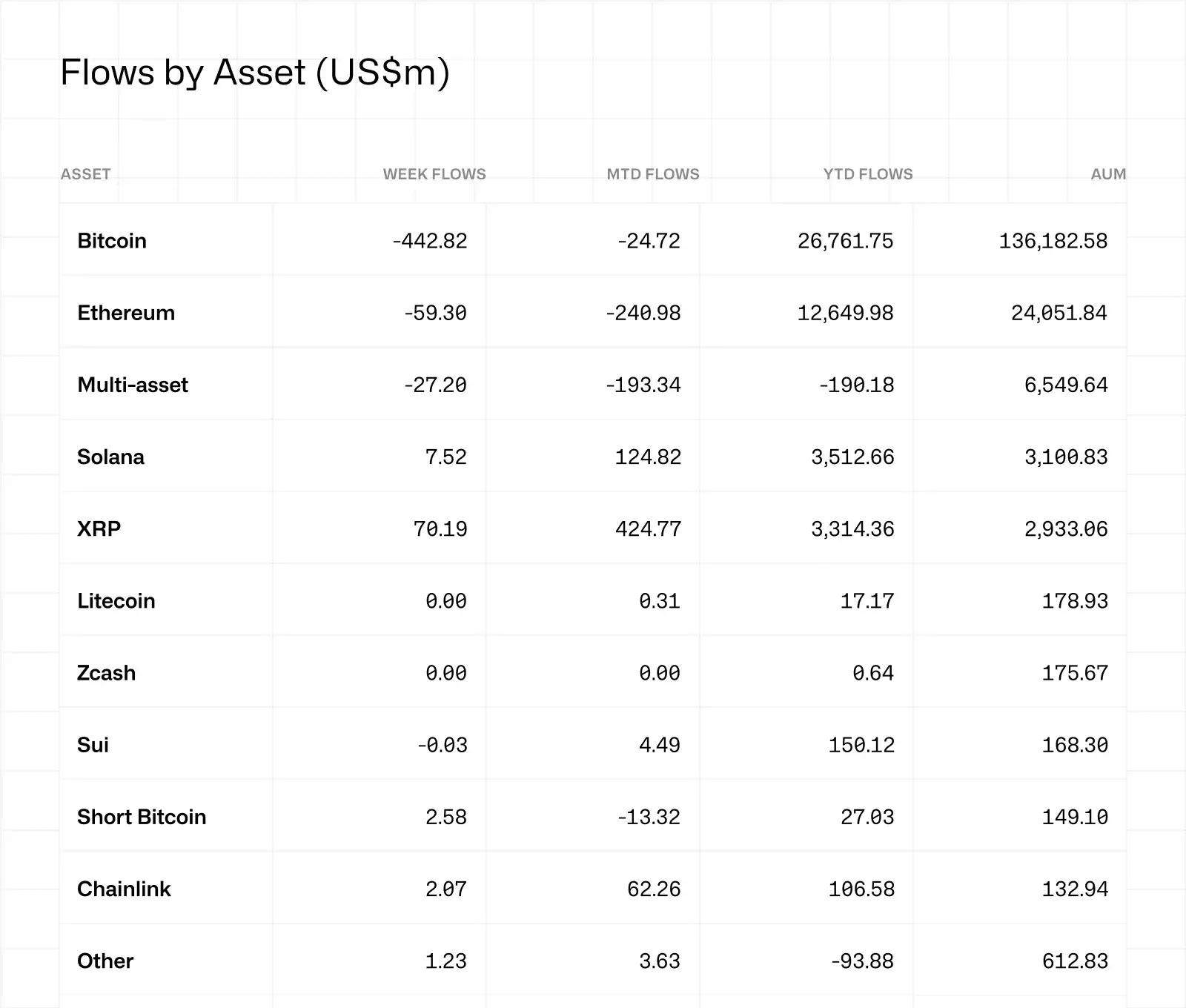 市场情绪尚未恢复。资金仍在流出广泛的市场产品,尤其是与领先加密货币比特币(BTC)和以太坊(ETH)相关的产品。
